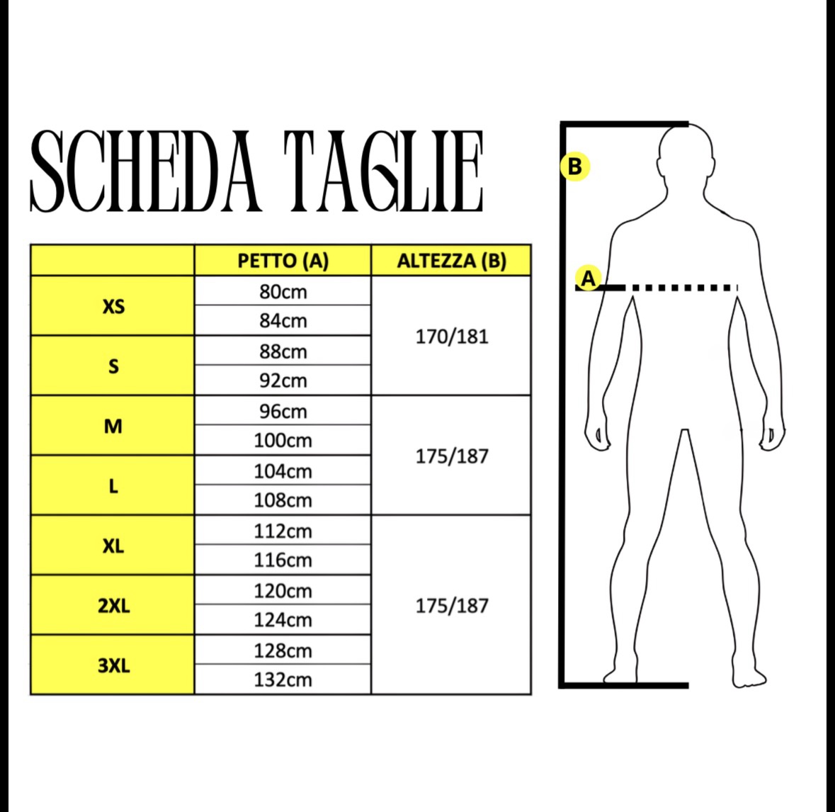 | TAGLIA Abbigliamento | XS, S, M, L, XL, 2XL, 3XL |